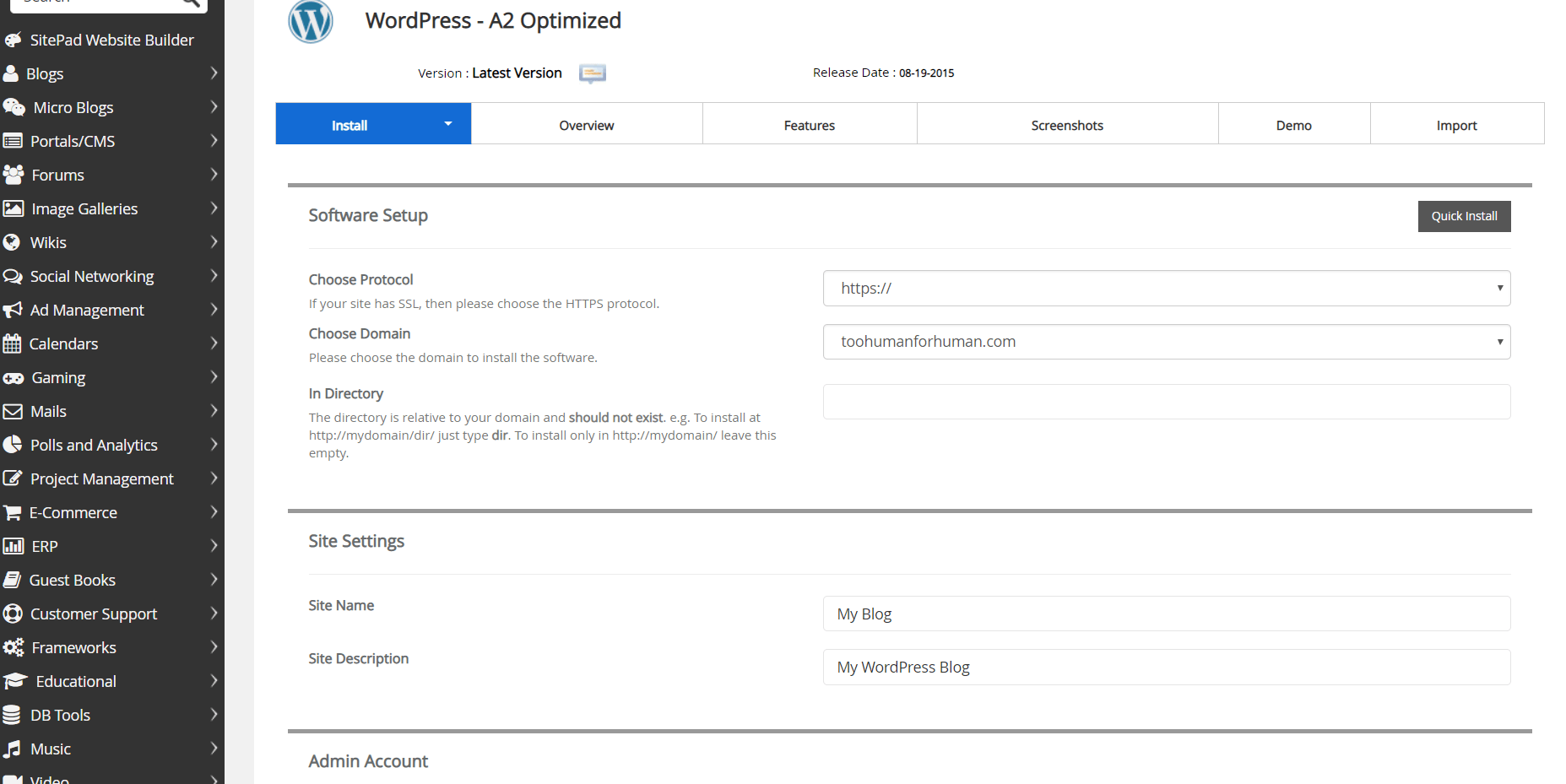 Cuando se registra en A2 Hosting, simplemente puede marcar una casilla y automáticamente instalarán WordPress (o casi cualquier otro creador de sitios web). Si se lo perdió o si desea instalar sitios adicionales de WordPress en su cuenta, así es como puede hacerlo.