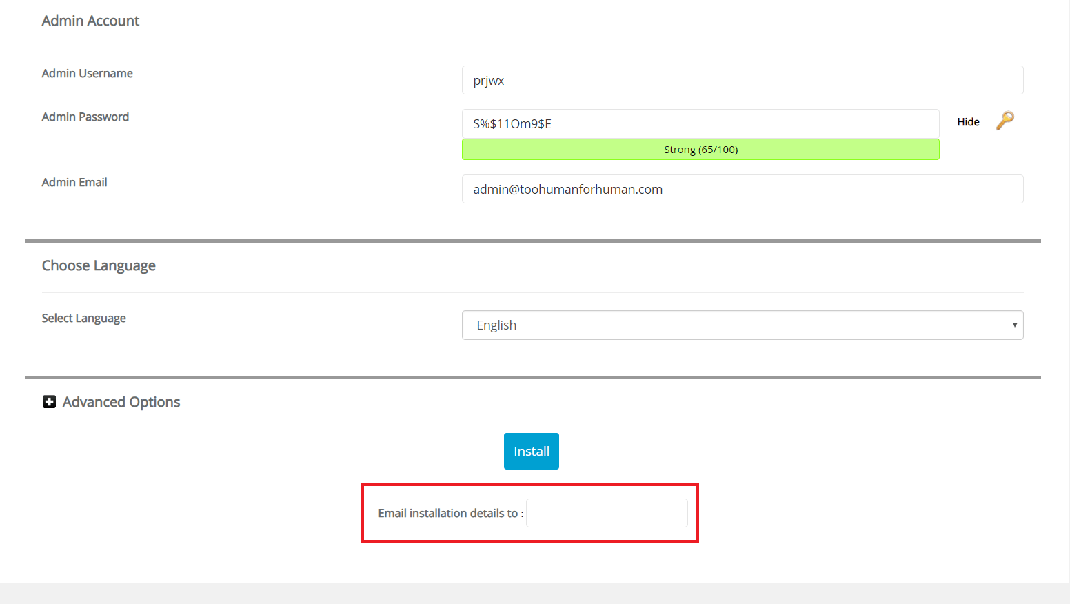 A continuación, es donde configurará sus credenciales de inicio de sesión para su cuenta de administrador de WordPress. A2 Hosting le sugerirá un nombre de usuario y una contraseña segura, pero también puede usar el suyo.